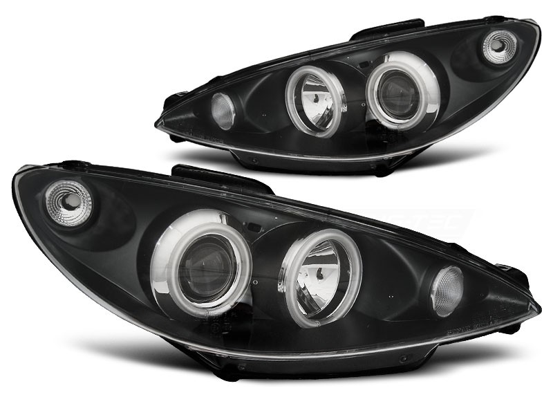 Lampy przednie do: Peugeot 206 - Angel Eyes CCFL Black - Ringi