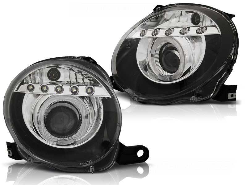 Lampy przednie do: Fiat 500 - BLACK LED soczewkowe