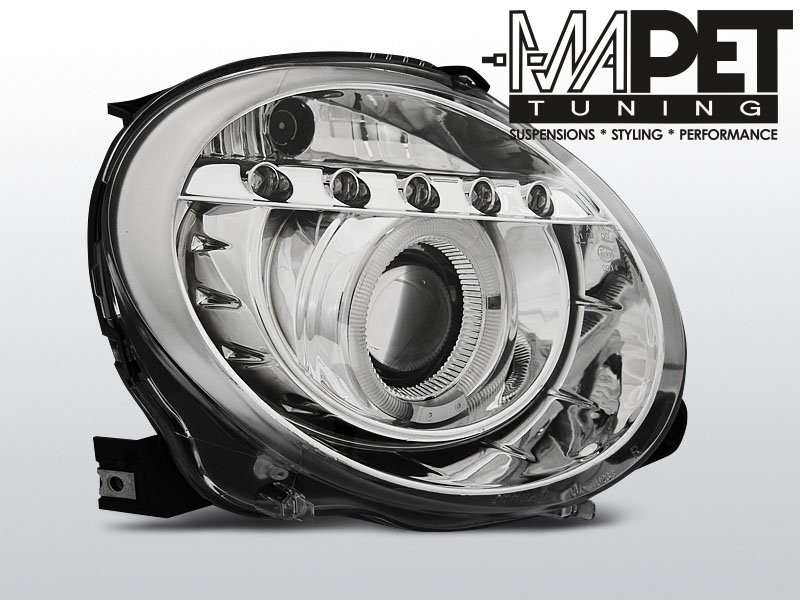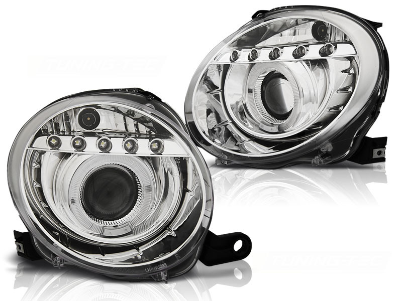 Lampy przód Fiat 500 - CHROM LED soczewkowe LPFI21
