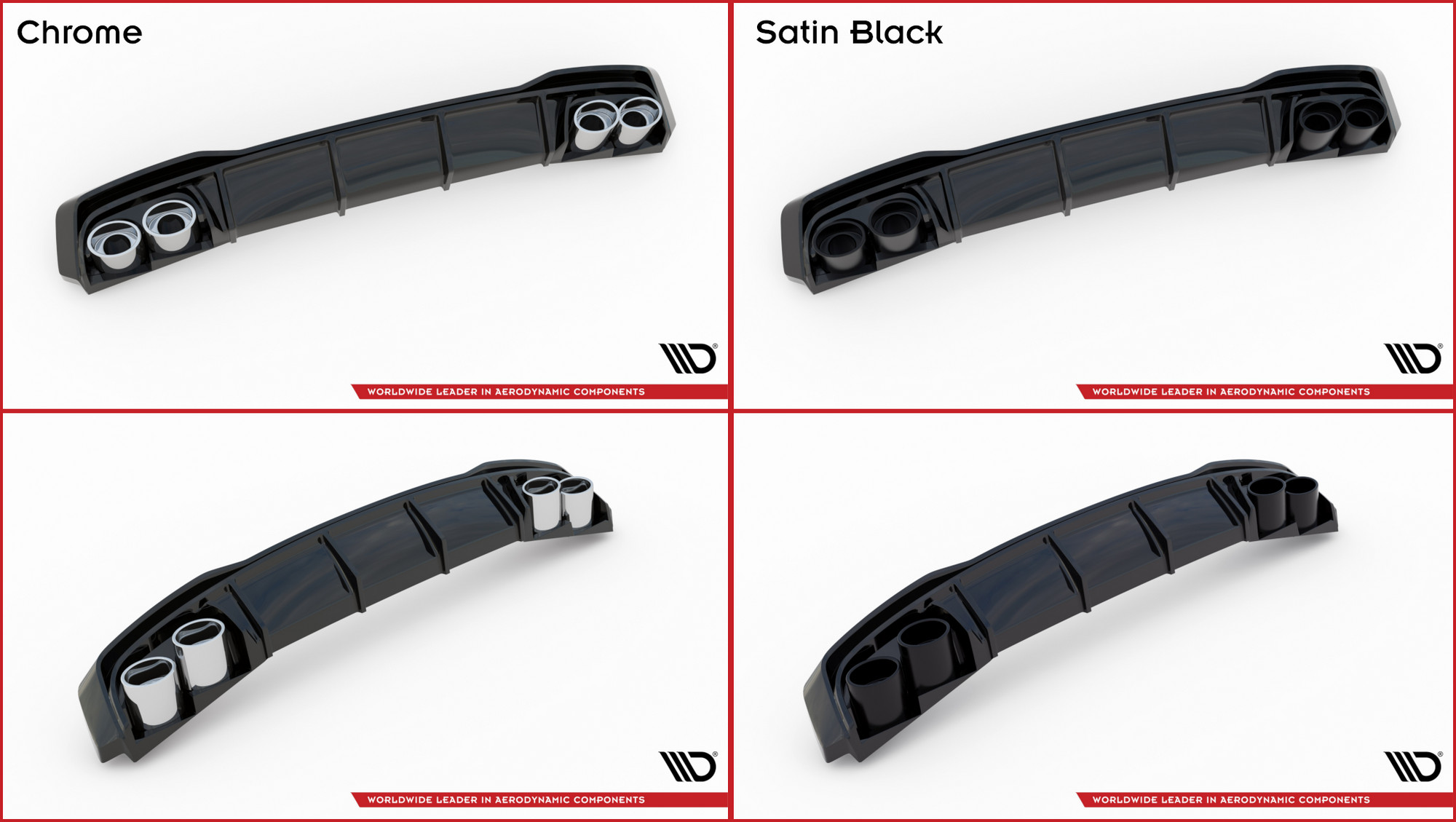 Do montażu należy użyć wkrętów lub nitów , których nie ma w zestawie. Dyfuzor pasuje w miejsce seryjnego, ale nie zatrzaskuje się na spinkach.