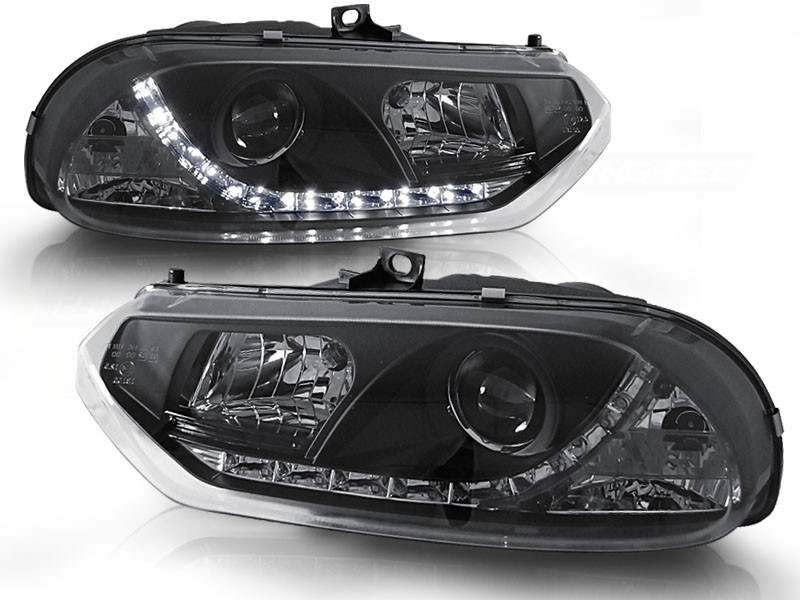 Lampy przednie do: Alfa Romeo 156 - BLACK LED - przezroczyste ciemne / czarne lampy z diodowymi świetlnymi paskami