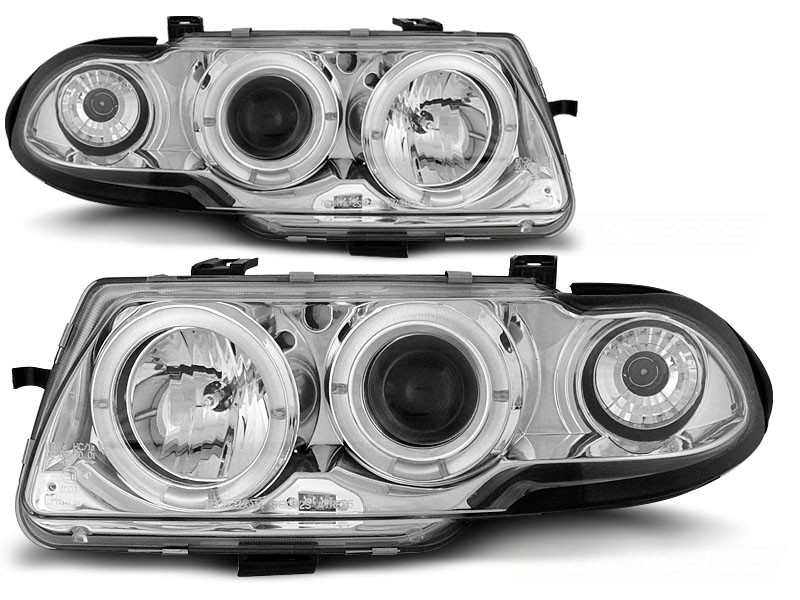 Lampy przód Opel Astra F 91-94 clear Angel Eyes CHROM soczewka LPOP01