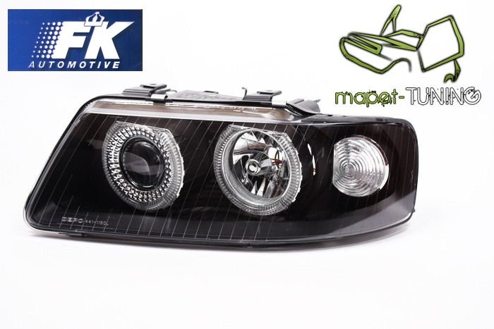 Lampy przednie do: Audi A3 8L - clearglass Angel Eyes BLACK - przezroczyste czarne soczewkowe - 2 ringi