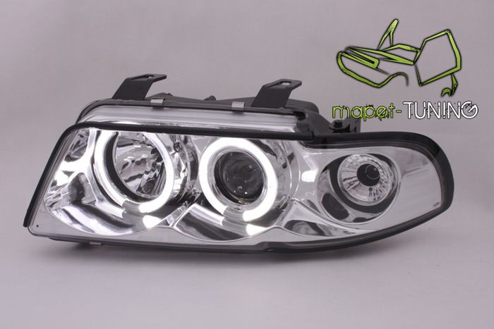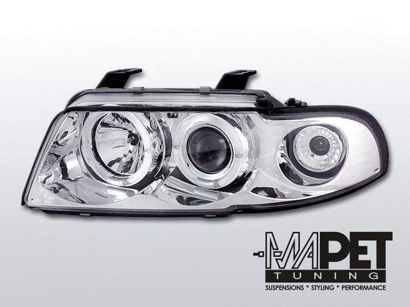 Lampy przednie do: Audi A4 B5 - Angel Eyes BLACK - Ringi - przezroczyste z soczewką + 2 ringi + kierunkowskaz