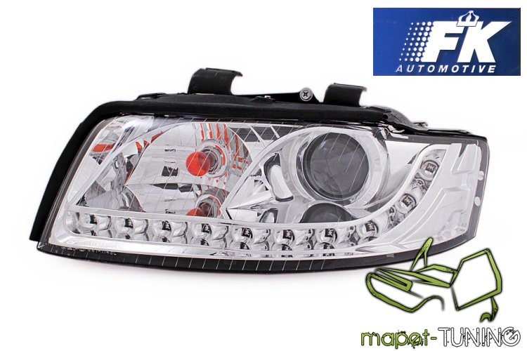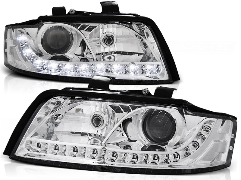Lampy przednie do: Audi A4 B6 - CHROM Bi - Halogen z soczewką na H7 działającą jak bi-xenon