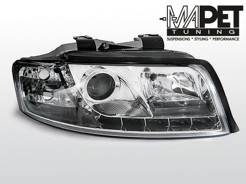 Lampy przednie do: Audi A4 B6 - CHROM z paskiem diód LED