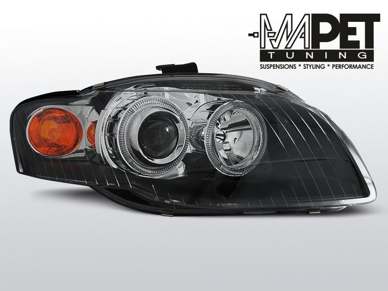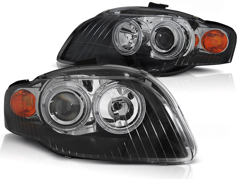 Lampy przednie do: Audi A4 B7 - BLACK Angel Eyes - przezroczyste czarne z Ringami