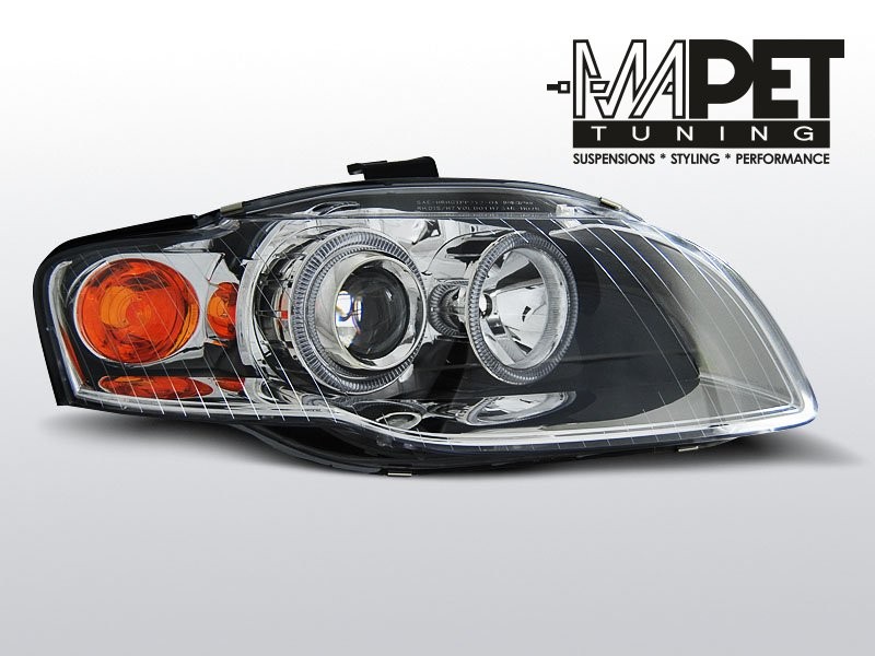 Lampy przednie do: Audi A4 B7 - CHROM Angel Eyes - przezroczyste czarne z Ringami