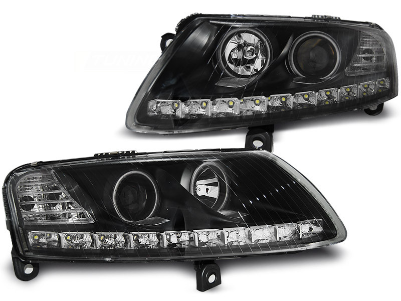 Audi A6 C6 4F - BLACK - lampy typu Daylight z diodami LED i ringami CCFL