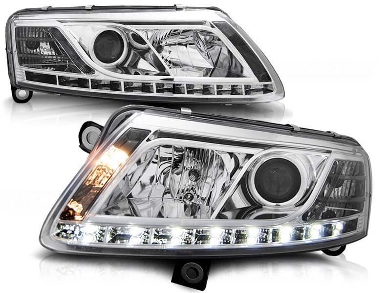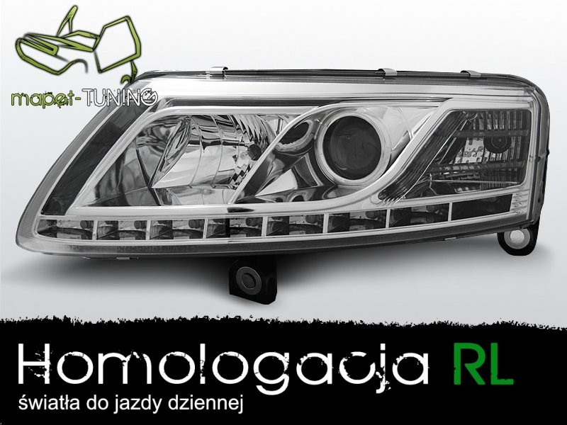 Lampy przednie do: Audi A6 4F - XENON D2S CHROM LED - DEVIL EYES - przezroczyste lampy typu Daylight z diodowymi światłami JAZDY DZIENNEJ !