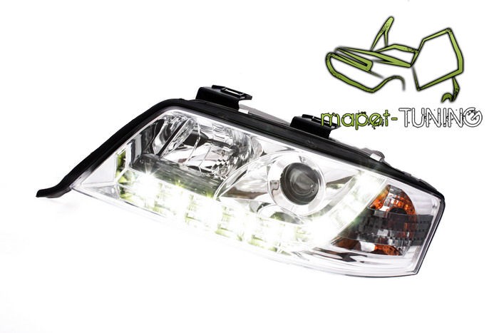 Lampy przednie do: Audi A6 - CHROM LED - przezroczyste lampy z diodowymi świetlnymi paskami