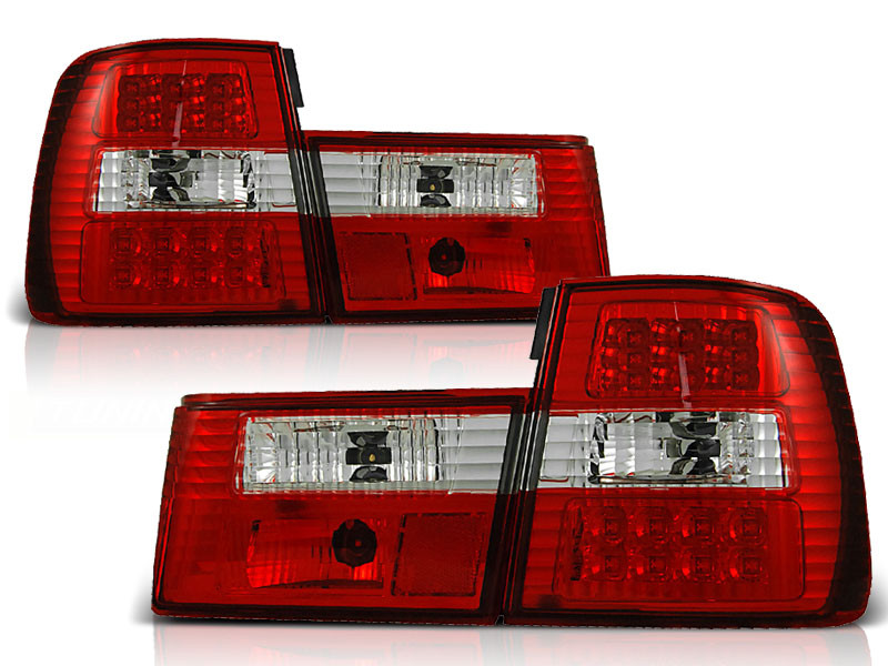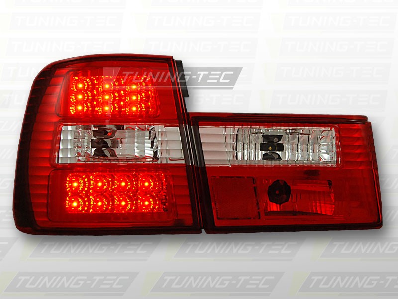 Lampy tylne do: BMW E34 Sedan - CLEAR RED / WHITE LED - przezroczyste czerwono - białe z diodami Led