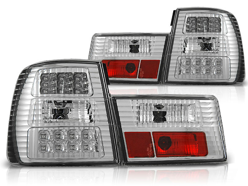 Lampy tylne do: BMW E34 Sedan - CHROM LED - przezroczyste białe z diodami Led