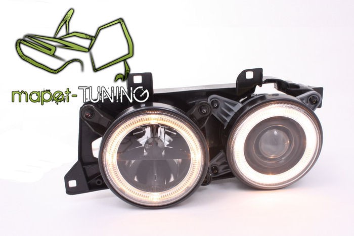 Lampy przednie do: BMW E-34 - Angel Eyes BLACK - czarne z soczewką + Ringi