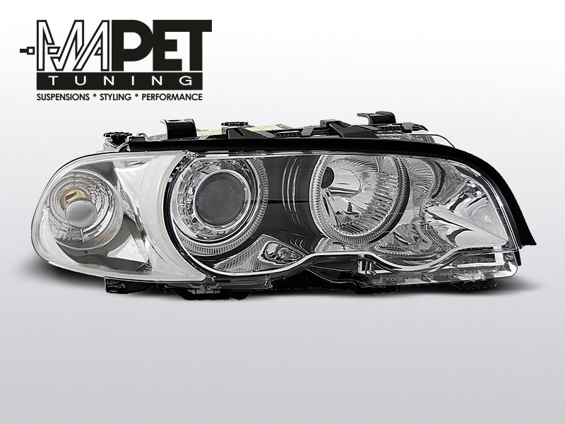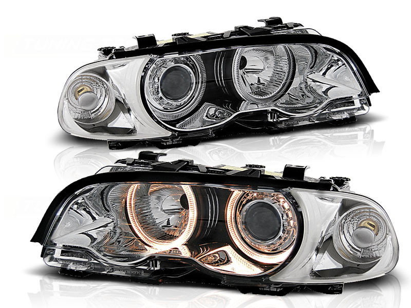 Lampy przednie do: BMW E-46 COUPE / CABRIO - przezroczyste Angel Eyes z soczewką + Ringi