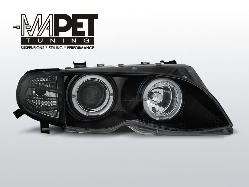 Lampy przednie do: BMW E-46 SEDAN / TOURING - CLEAR ANGEL EYES BLACK przezroczyste z soczewką + MIGACZE