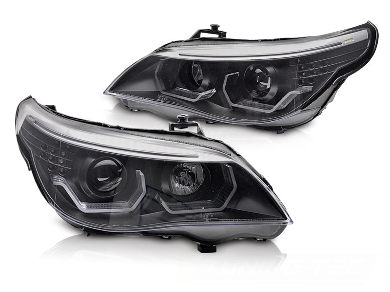 BMW E60 / E61 - BLACK - lampy typu Angel Eyes z diodowymi kierunkowskazami LED
