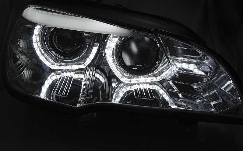 Lampy przednie do: BMW E70 X5 LED Angel Eyes DRL dzienne CHROM