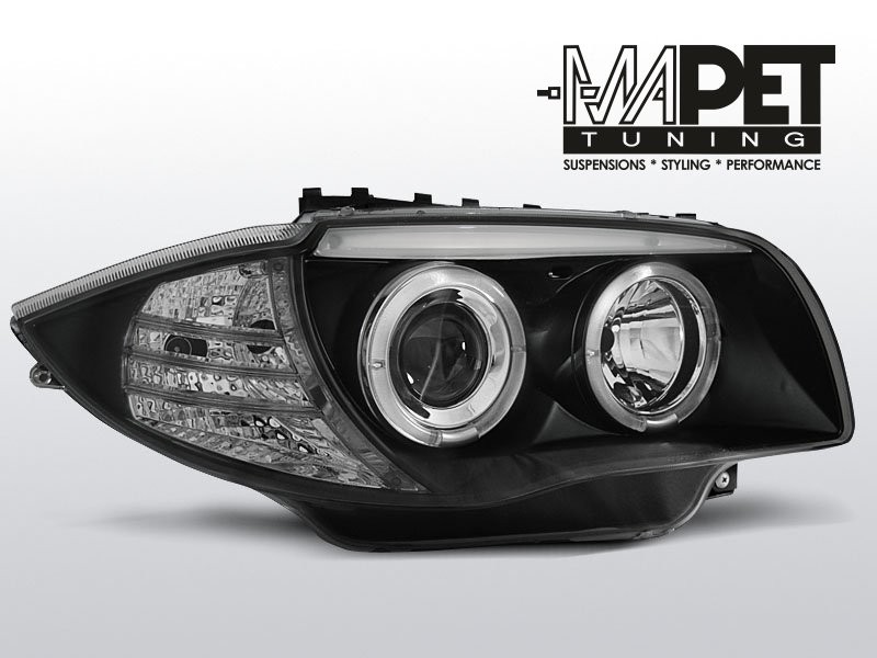 BMW E87 / E81 / E82 / E88 - BLACK przezroczyste Angel Eyes z soczewką + Ringi