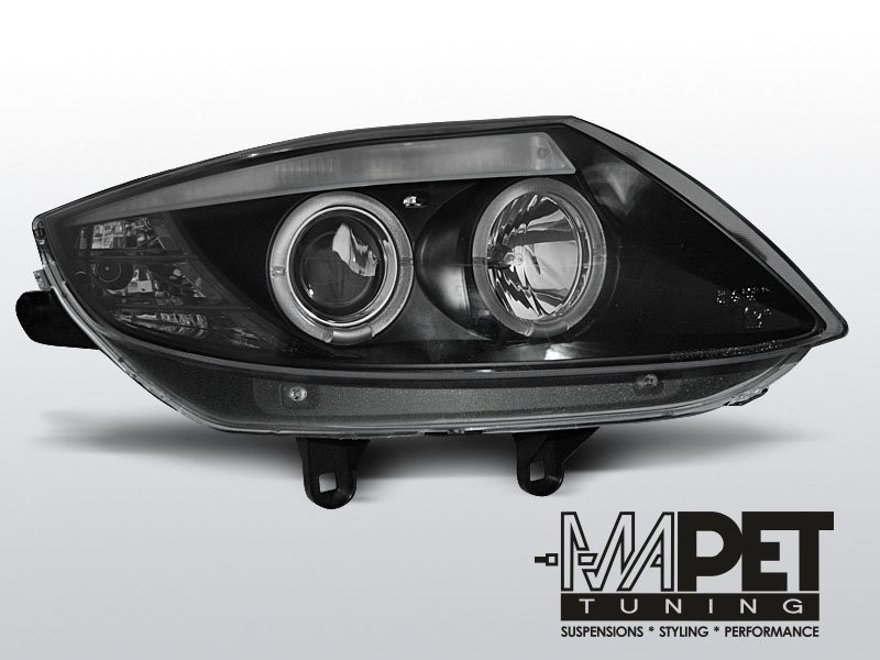Lampy przednie do: BMW Z4 Roadster / Coupe - przezroczyste czarne Angel Eyes BLACK z soczewką + Ringi