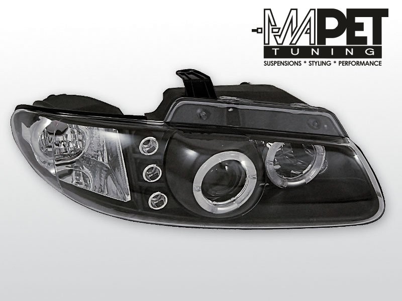 Lampy przednie do: Chrysler Voyager / Dodge Caravan / Plymouth Voyager - BLACK Angel Eyes + LED - soczewkowe , Ringi + diody