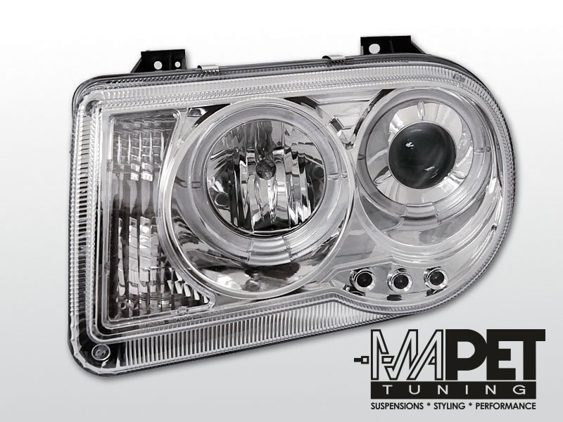 Lampy przednie do: CHRYSLER 300C - CHROM Angel Eyes + LED - soczewkowe , Ringi + diody