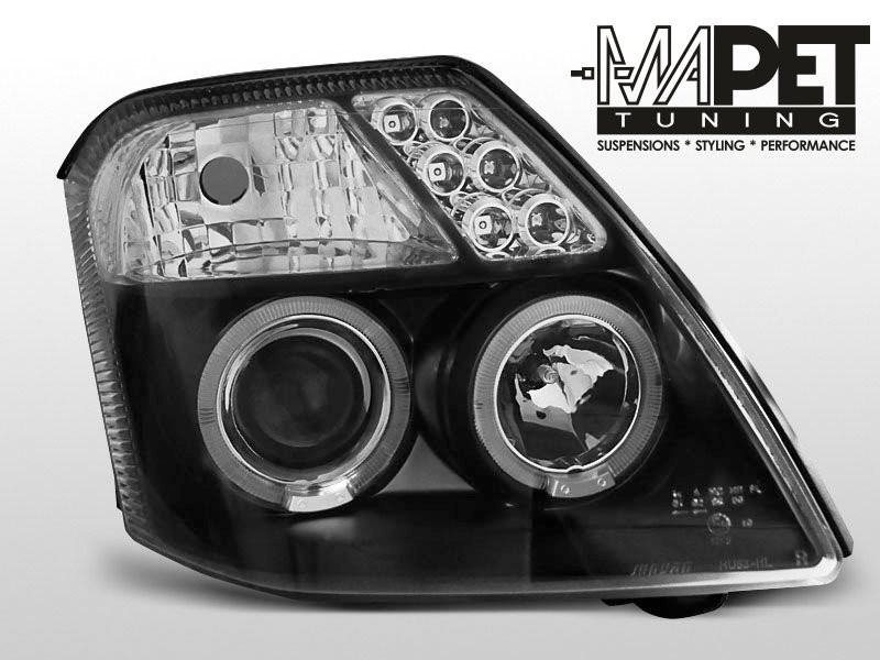 Lampy przednie do: CITROEN C2 - BLACK Angel Eyes - soczewkowe , Ringi
