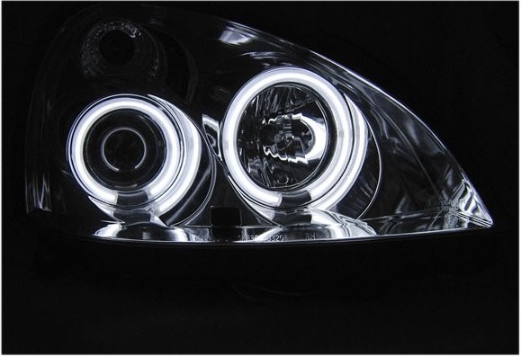 Lampy przednie do: Renault Clio 2 - Angel Eyes CCFL CHROM - z soczewką + Ringi
