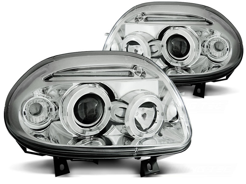 Lampy przednie do: Renault Clio - Angel Eyes CHROM - przezroczyste z soczewką + Ringi