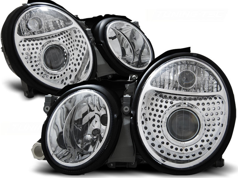 Lampy przednie do: Mercedes CLK W208 - CHROM - przezroczyste wkładem z soczewką