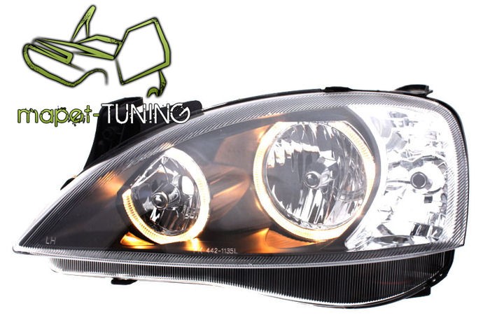 Lampy przednie do: Opel Corsa C - clearglass Black Angel Eyes - przezroczyste + 2 ringi