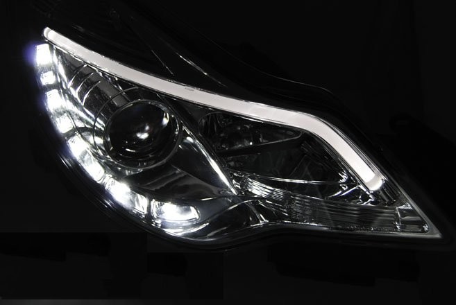 Lampy przednie do: Opel Corsa D - LED DRL CHROM - diodowe do jazdy dziennej