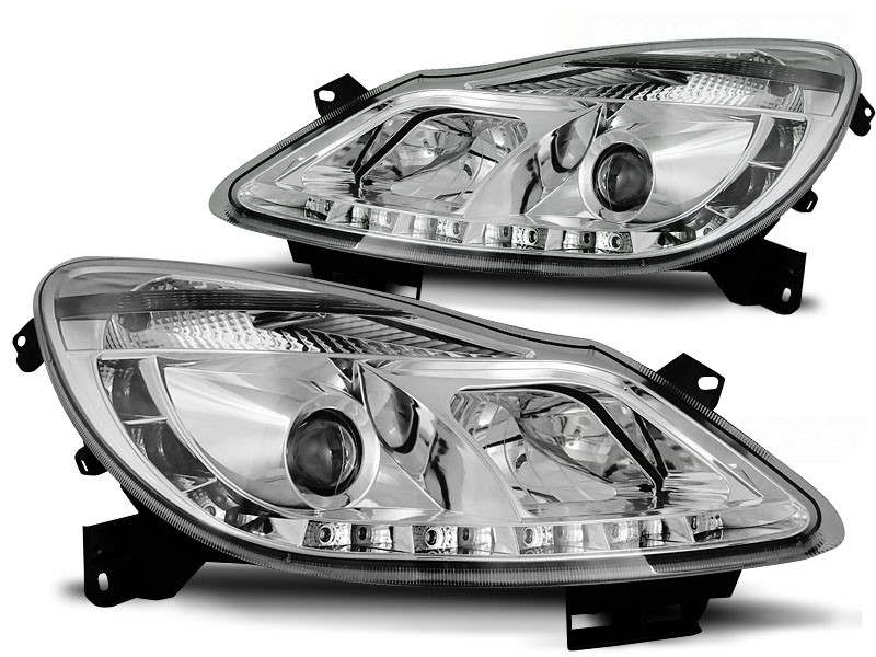 Lampy przednie do: Opel Corsa D - CHROM LED - lampy z diodowymi świetlnymi paskami
