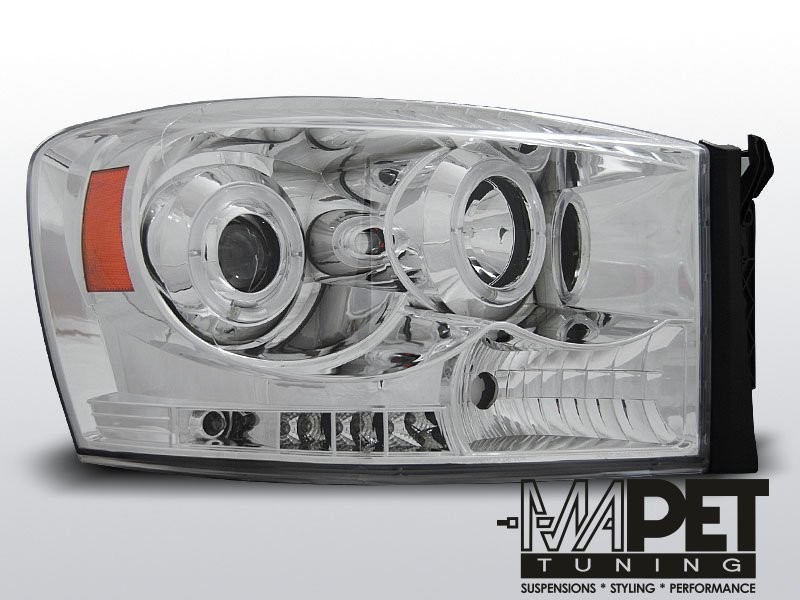 Lampy przednie do: DODGE RAM 06-08 - CHROM Angel Eyes - soczewkowe , Ringi