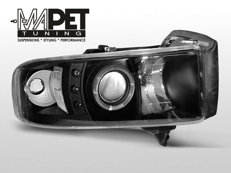 Lampy przednie do: DODGE RAM 94-01 - BLACK Angel Eyes - soczewkowe , Ringi