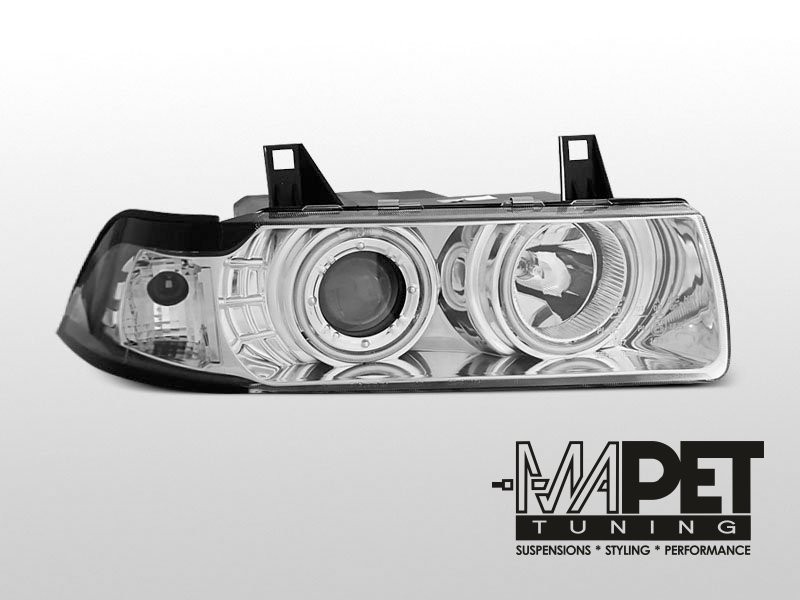 Lampy przednie do: BMW E-36 COUPE / CABRIO - CHROM przezroczyste Angel Eyes z soczewką + Ringi CCFL