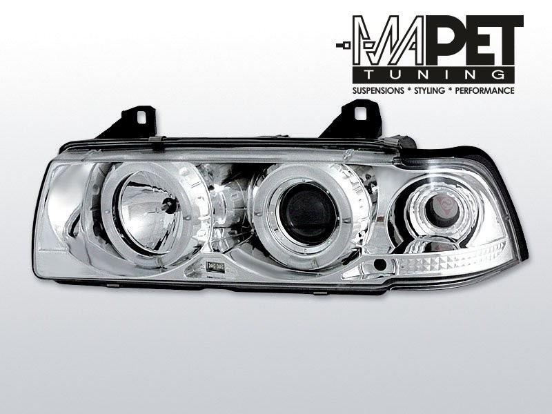 Lampy przód BMW E36 Sedan Compact Touring clear Angel Eyes CHROM Ringi BM01