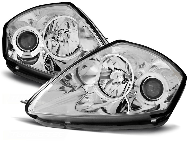 Lampy przednie do: Mitsubishi Eclipse - Angel Eyes CHROM - przezroczyste z ciemnym wkładem z soczewką + Ringi