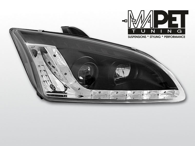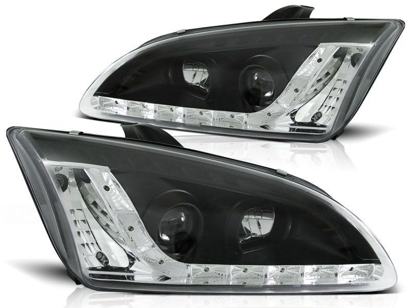 Lampy przednie do: Ford Focus II - BLACK LED - lampy z diodowymi świetlnymi paskami