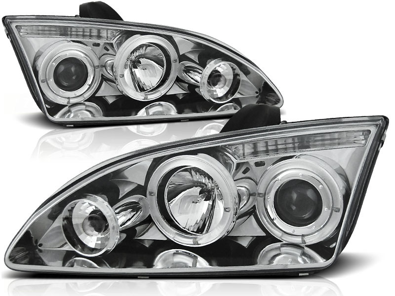 Lampy przednie do: Ford Focus II - Angel Eyes CHROM - przezroczyste z soczewką + Ringi