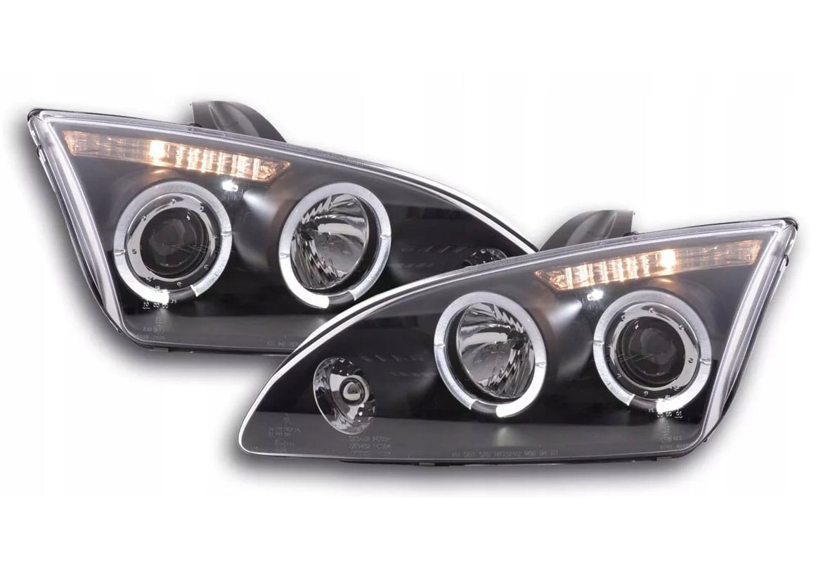 Lampy przód Ford Focus II clear Angel Eyes BLACK soczewki ringi LPFO14