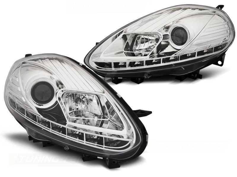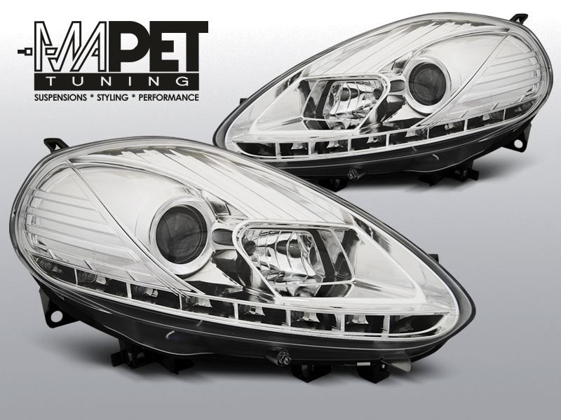 Lampy przednie do: FIAT PUNTO EVO 10.09-12 CHROM DRL LED diodowe dzienne