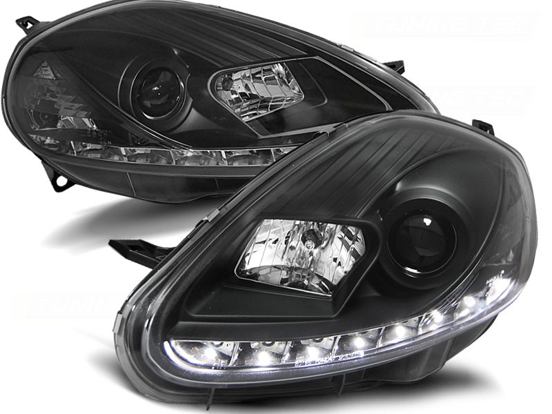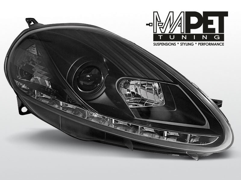 Lampy przednie do: Fiat Grande Punto - BLACK LED - ciemne lampy z diodowymi paskami