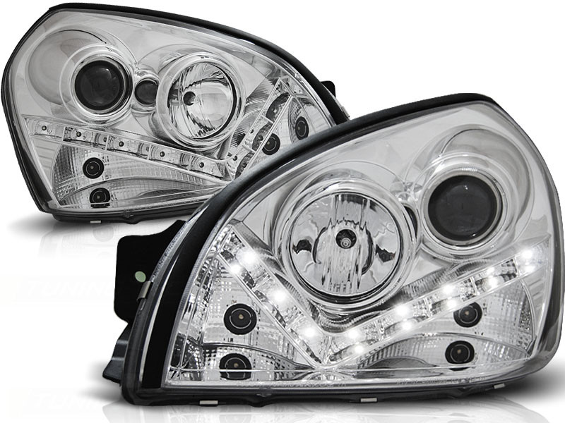 Lampy przednie do: Hyundai Tucson - CHROM LED - lampy z diodowymi świetlnymi paskami