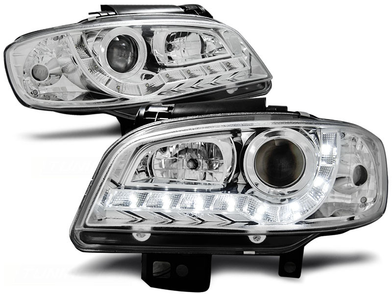 Lampy przednie do: Seat Ibiza - CHROM LED - przezroczyste lampy z diodowymi świetlnymi paskami