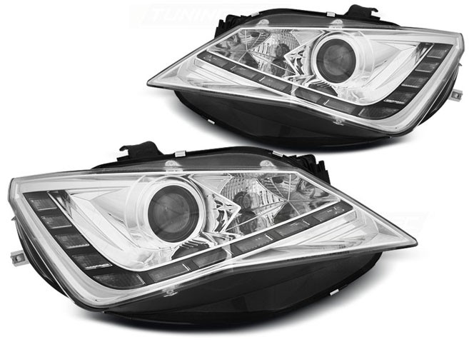 Lampy przednie do: Seat Ibiza 6J - CHROM Daylight LED - lampy z diodowymi dziennymi