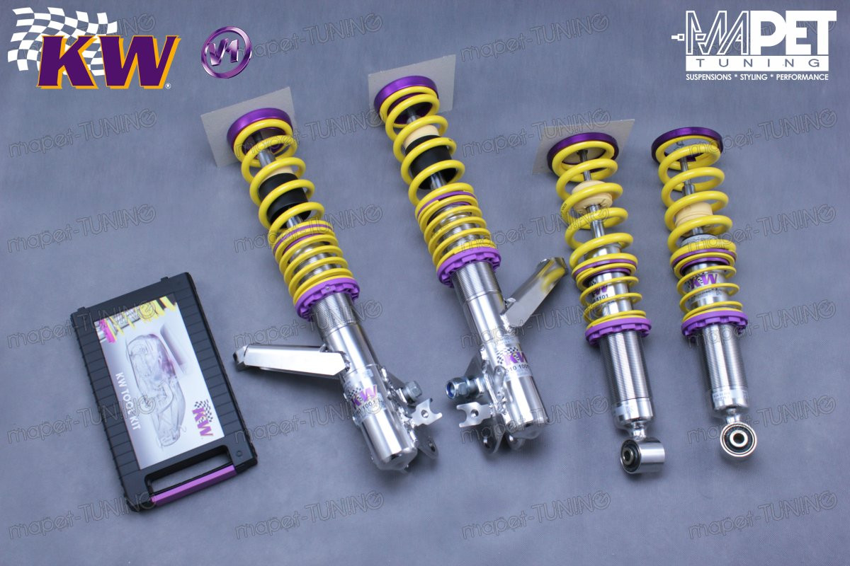 Zestaw zawieszenia gwintowanego KW V1 “inox line” to model bazowy, zwiększający przyjemność z jazdy i pozwalający na regulacje obniżenia samochodu według indywidualnego gustu. Wykonany z najwyższej jakości materiałów, kolumna amortyzatora ze stali nierdzewnej, sprężyny i odboje odporne na korozję, oraz dopasowane pozostałe elementy gwarantują długotrwałą radość z jazdy.