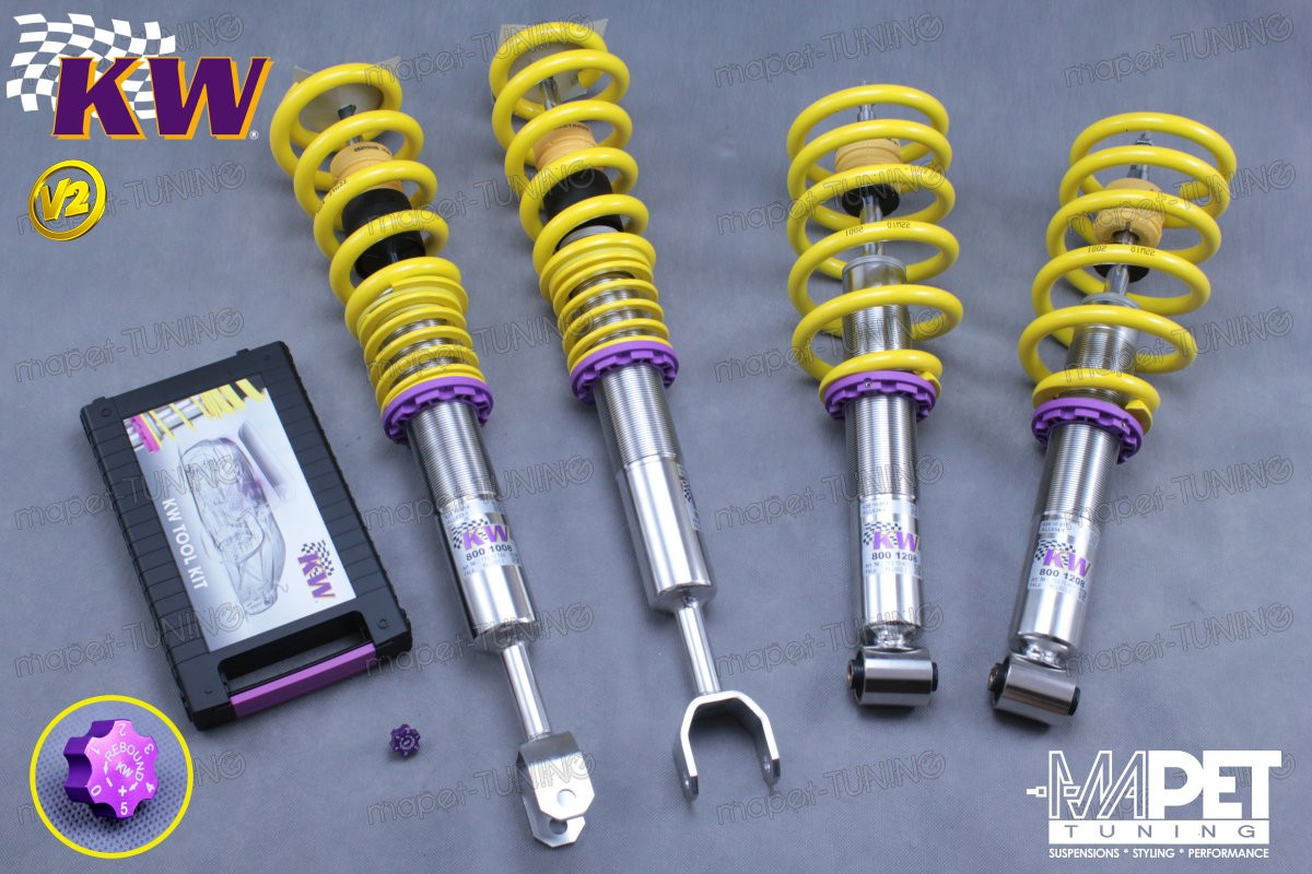 Zestaw zawieszenia gwintowanego KW V2 “inox-line” oferuje 16 stopniową regulację. Regulacja siły tłumienia pozwala na zmianę charakterystyki prowadzenia samochodu na przykład po zmianie kół/opon na inny rozmiar, bądź po założeniu opon zimowych. W zależności od własnych upodobań odporne na warunki atmosferyczne zawieszenie KW może być ustawione sztywniej, bądź bardziej komfortowo. KW V2 przeznaczone jest dla kierowców ze sportowym zacięciem, którzy potrzebują więcej niż jedynie regulacja wysokości