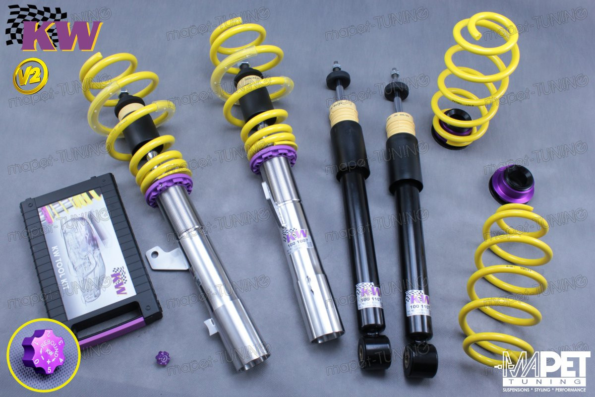 Zestaw zawieszenia gwintowanego KW V2 “inox-line” oferuje 16 stopniową regulację. Regulacja siły tłumienia pozwala na zmianę charakterystyki prowadzenia samochodu na przykład po zmianie kół/opon na inny rozmiar, bądź po założeniu opon zimowych. W zależności od własnych upodobań odporne na warunki atmosferyczne zawieszenie KW może być ustawione sztywniej, bądź bardziej komfortowo. KW V2 przeznaczone jest dla kierowców ze sportowym zacięciem, którzy potrzebują więcej niż jedynie regulacja wysokości