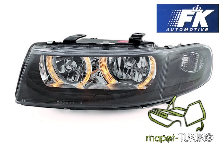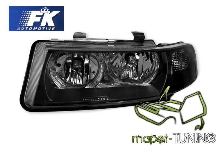 Lampy przednie do: Seat Leon - Angel Eyes BLACK - przezroczyste + Ringi